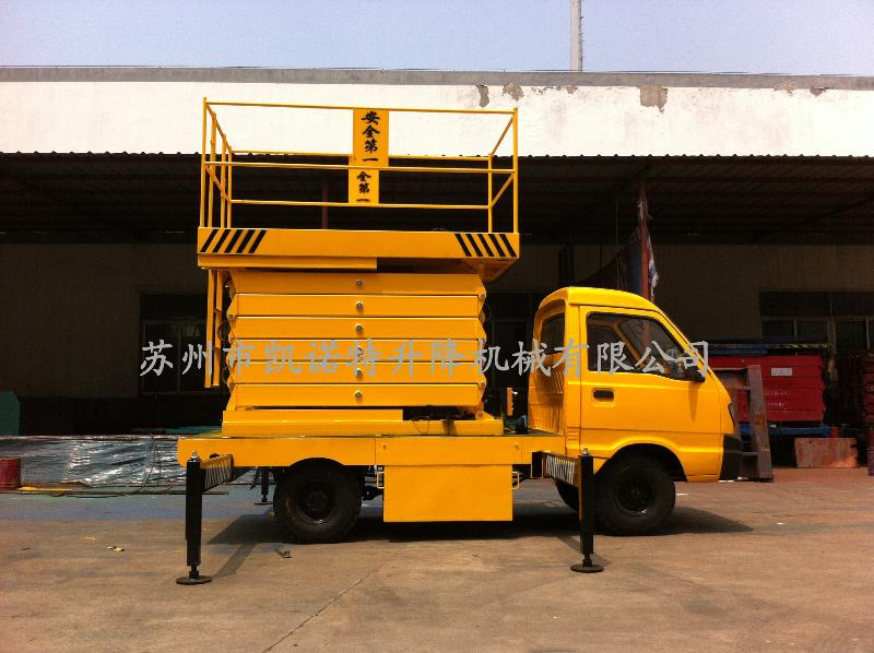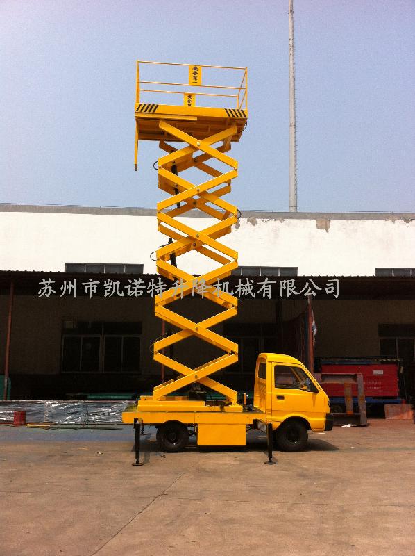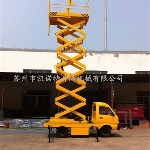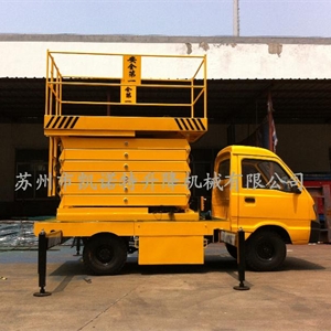 汽車載式液壓升降平臺是由升降臺和汽車配套改 裝而成的。它接取汽車引擎動力,實現(xiàn)升降臺的升降功能。適用于大 流動量的高空作業(yè)。